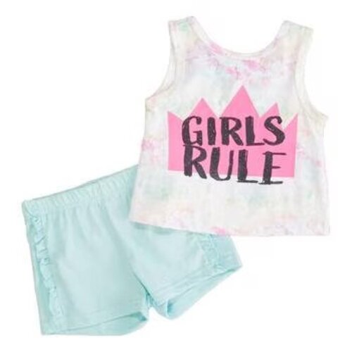 Baby Girl 2 PC ‘Girls Rule’ Top And Short Set – Turquoise