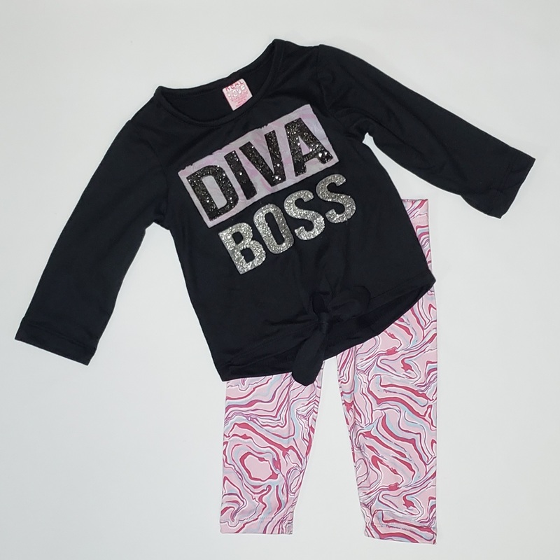 Baby Girl Real Love Diva Print Legging and Top 2pc Outfit