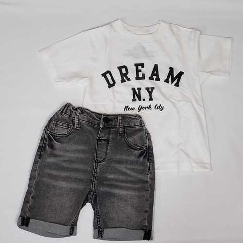 Jean shorts with denim construction, 5-pocket design, and signature hardware (98% cotton, 2% spandex)