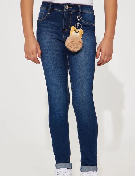 Girls Blue Denim Skinny Jeans With Teddy Bear Keychain