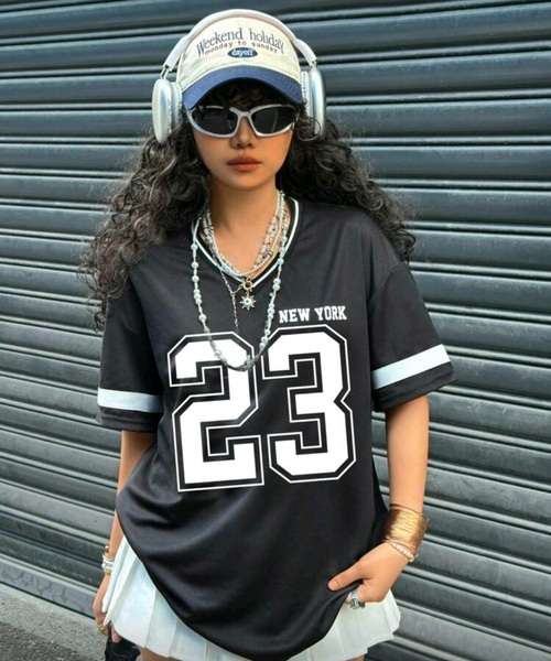 Girls Loose Fit V-Neck Shot Sleeve Number Print Tee