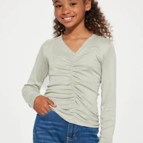 Girls Ruched Long Sleeve Top – Stone