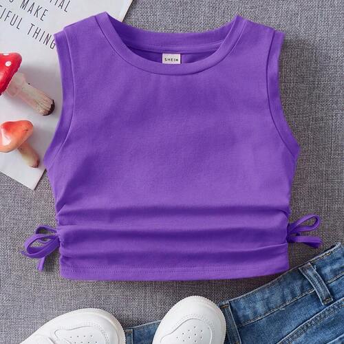 Girls Ruffle Detail Bowknot Tank Top – Purple