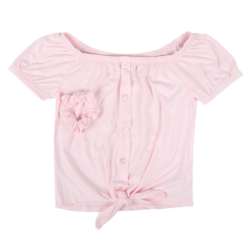Girls Tie Front Top W/Hair Accessory – Light Pink
