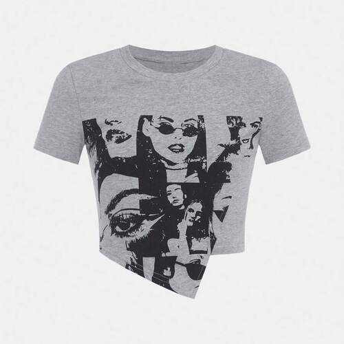 Girls Tween Figure Graphic Asymmetrical Hem Tee