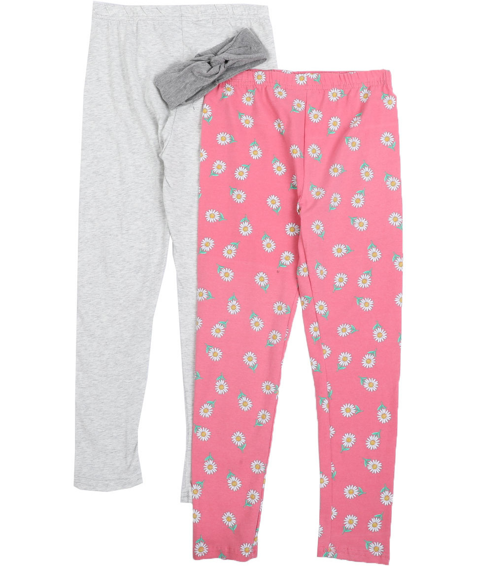 Girls Twin Pack Leggings – Pink Daisy and Heather Grey