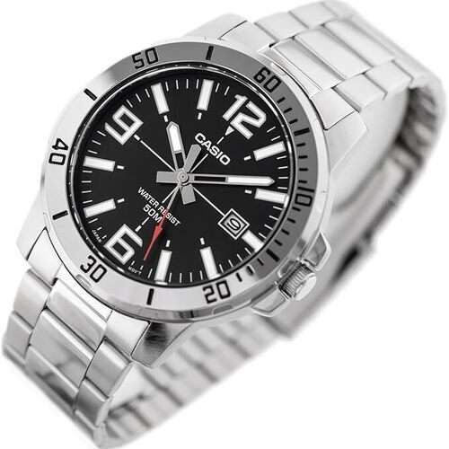 Men’s Casio Enticer Silver Tone Stainless Steel Black Dial, Analog Watch
