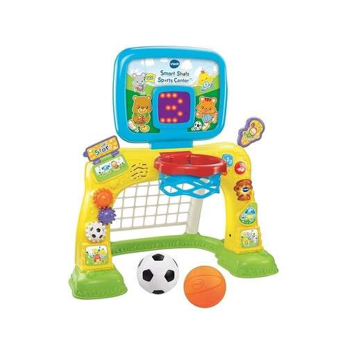- Two sports in one! Shoot a basket or score a goal on this combination activity center